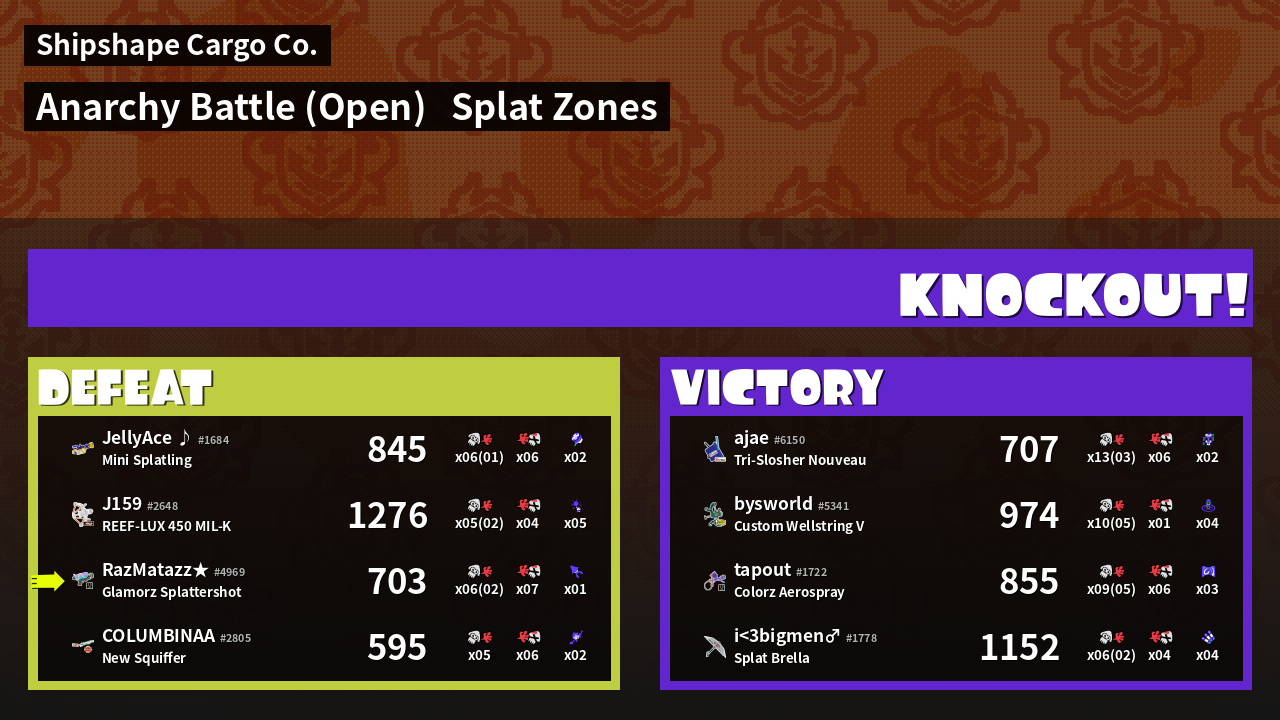 | Mode | Splat Zones - Anarchy Battle (Open) |
