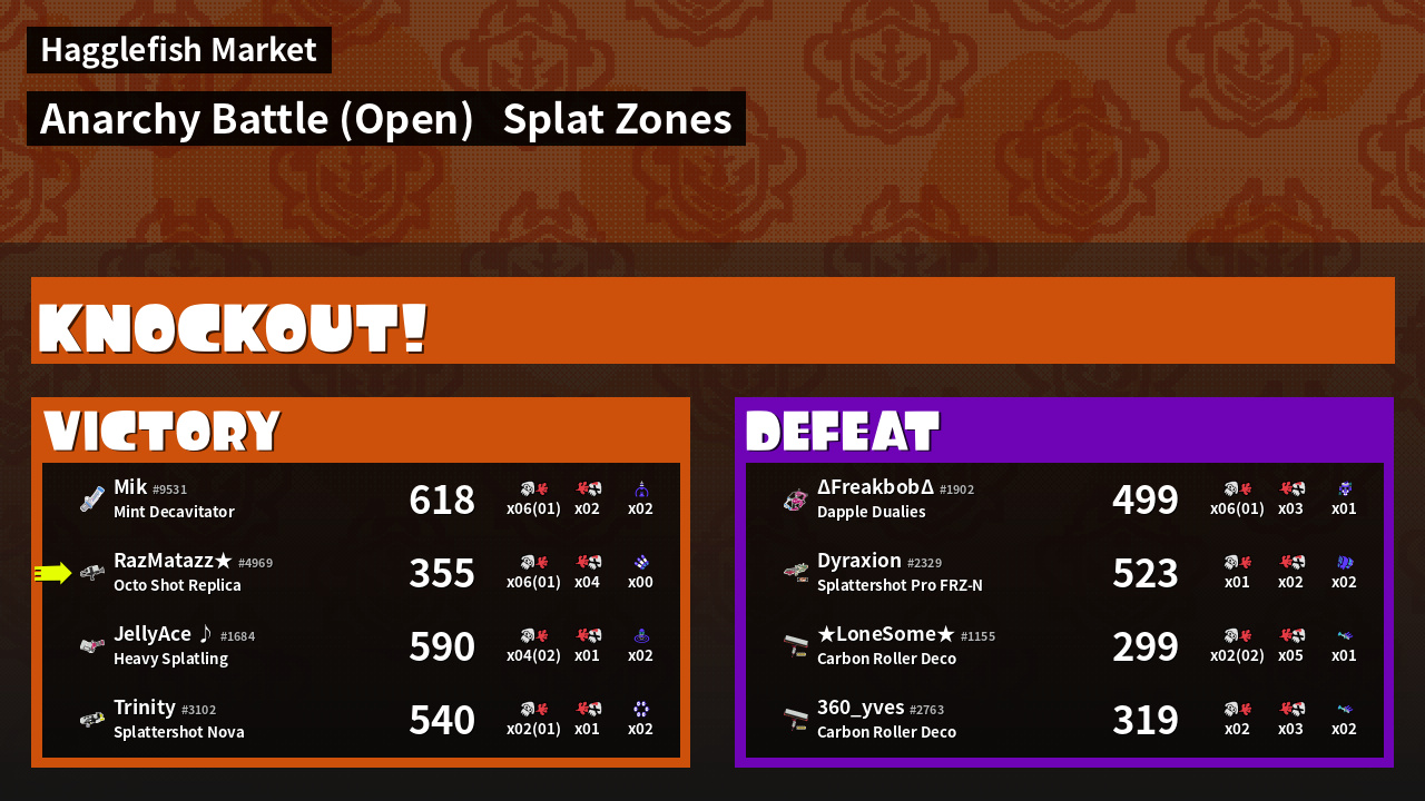| Mode | Splat Zones - Anarchy Battle (Open) |