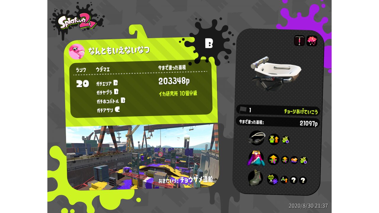 | Name | Weapon | Level | Rank | Inked | k+a/sp | k/d |