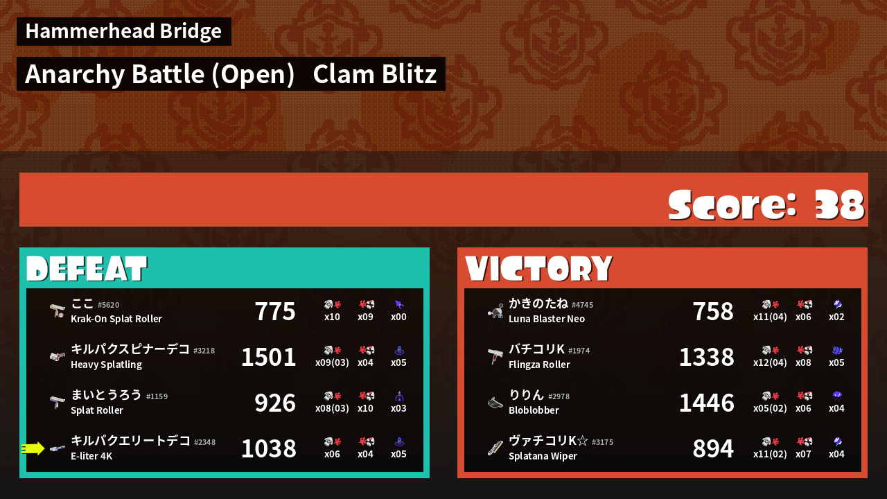 | Mode | Clam Blitz - Anarchy Battle (Open) | ||