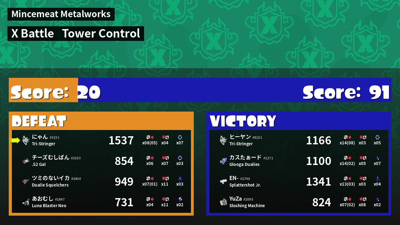 | Mode | Tower Control - X Battle | ||