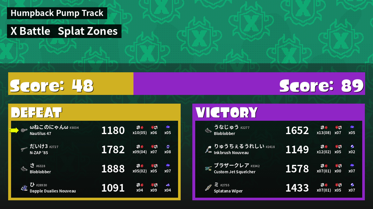 | Medals | #1 Overall Splatter #1 Splat Zone Guard #1 Enemy Splatter | ||