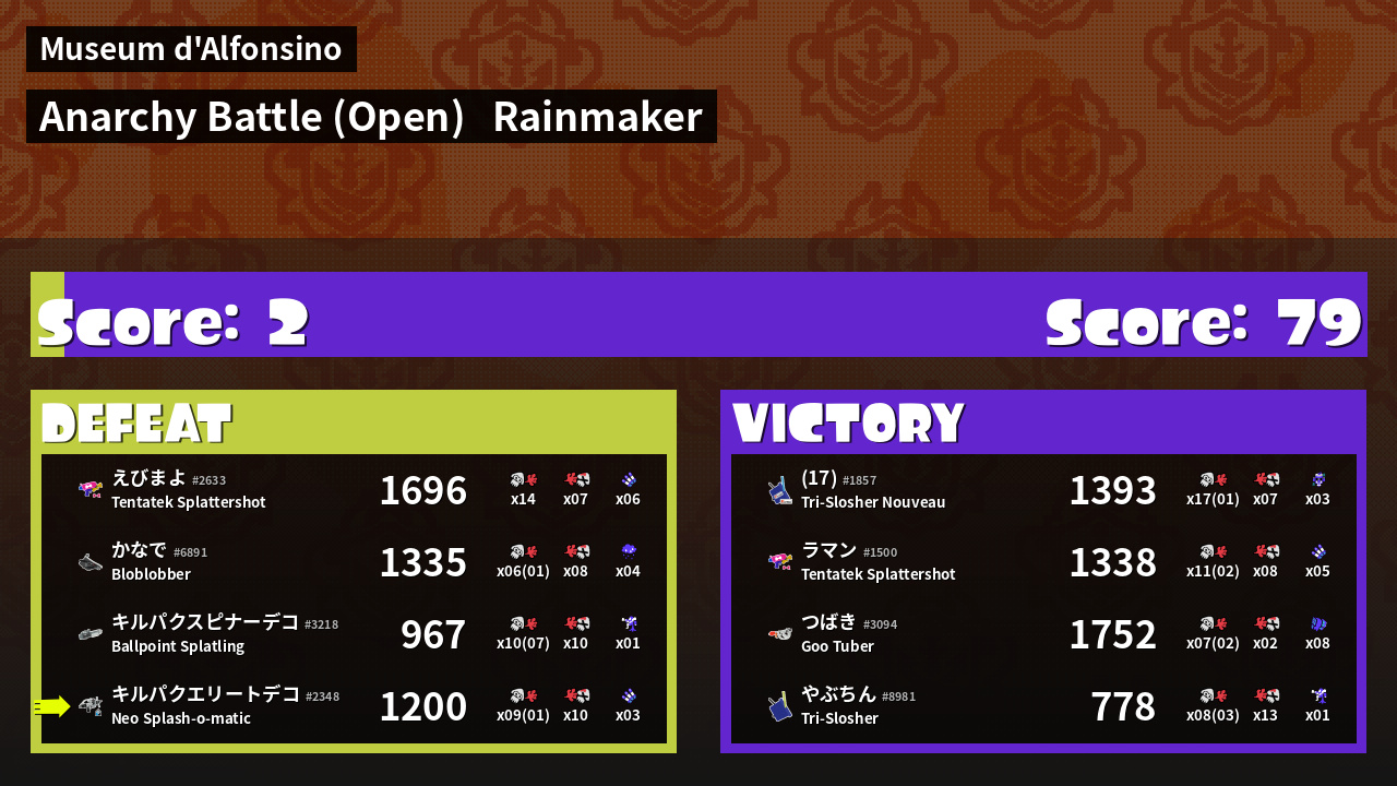 | Mode | Rainmaker - Anarchy Battle (Open) | ||