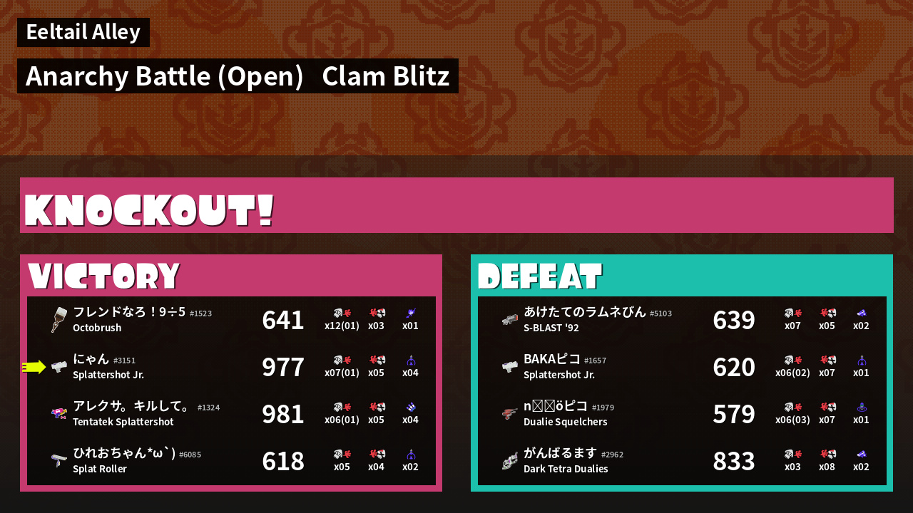 | Mode | Clam Blitz - Anarchy Battle (Open) | ||