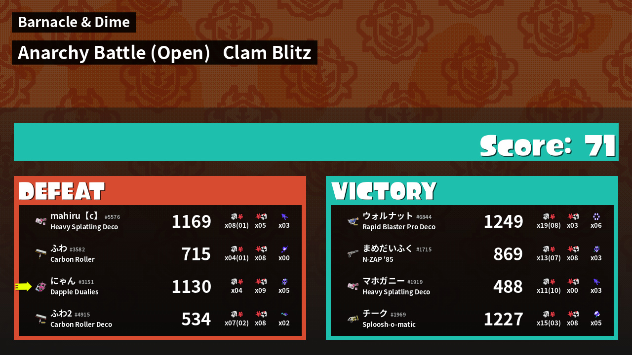 | Mode | Clam Blitz - Anarchy Battle (Open) | ||
