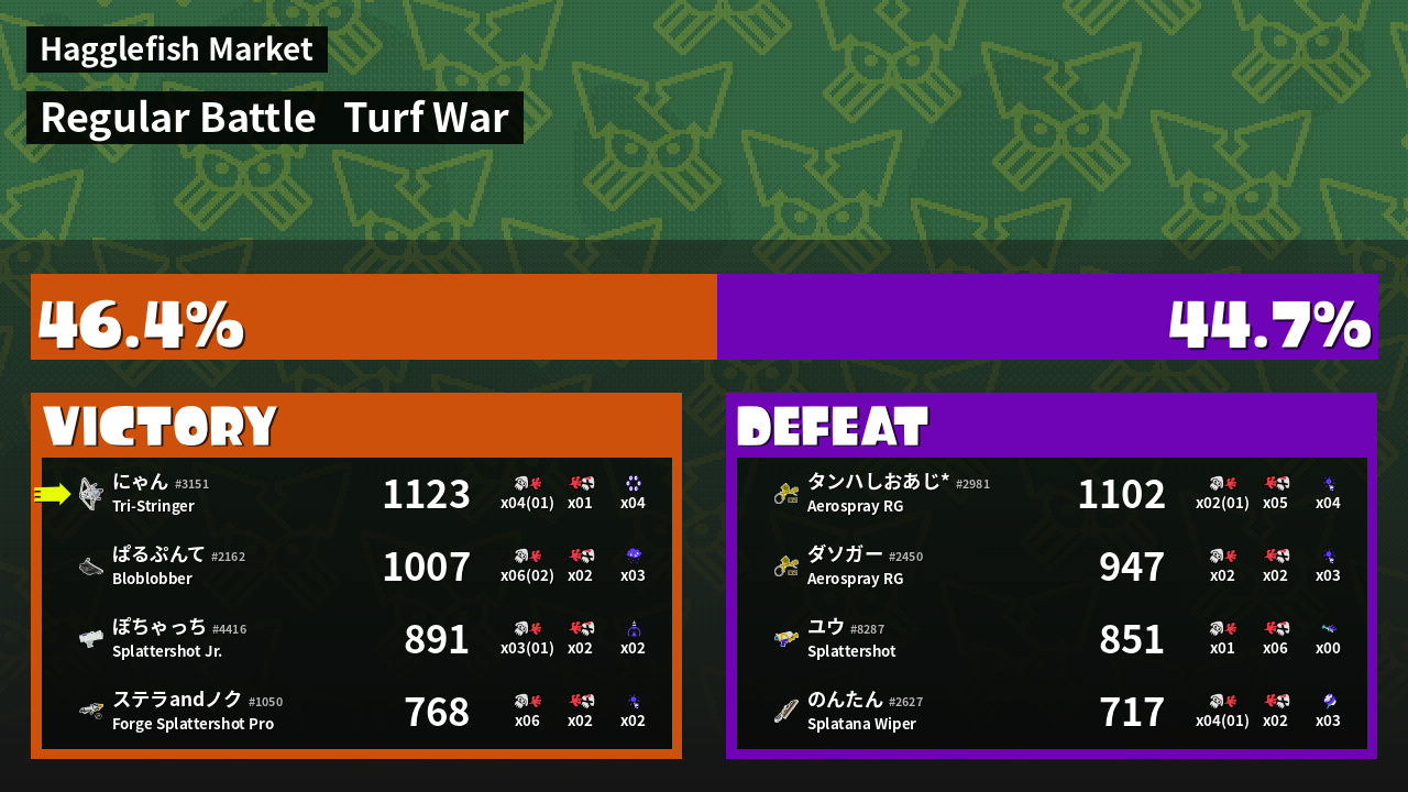| Mode |    Turf War -   Regular Battle | ||