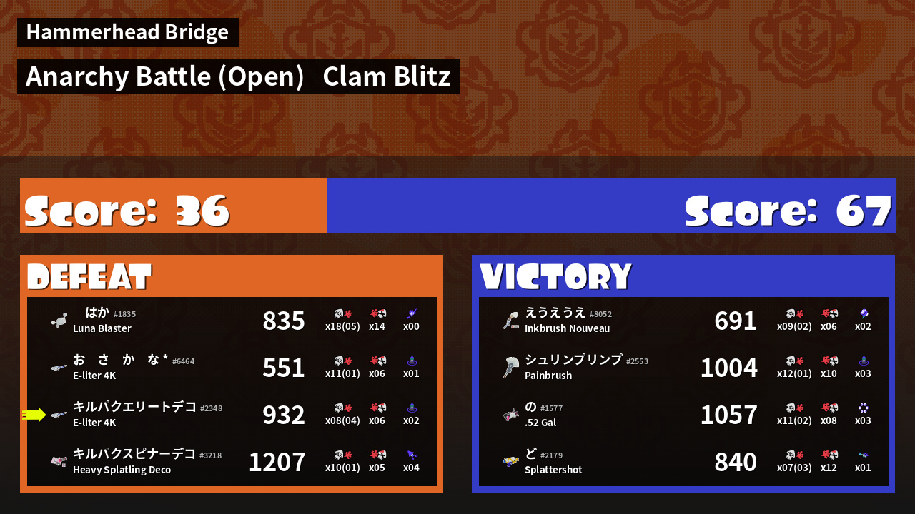 | Mode | Clam Blitz - Anarchy Battle (Open) | ||