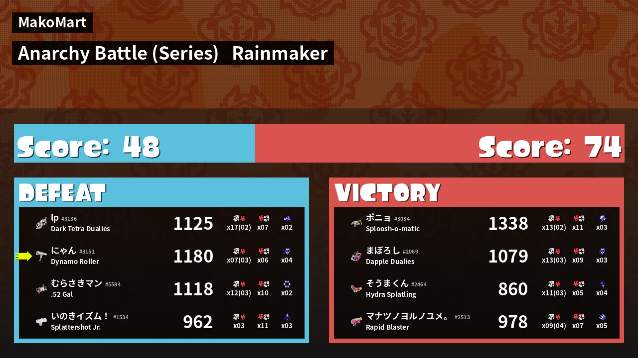 | Mode | Rainmaker - Anarchy Battle (Series) | ||