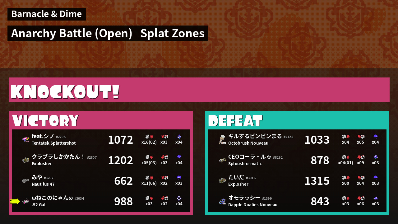 | Mode | Splat Zones - Anarchy Battle (Open) | ||