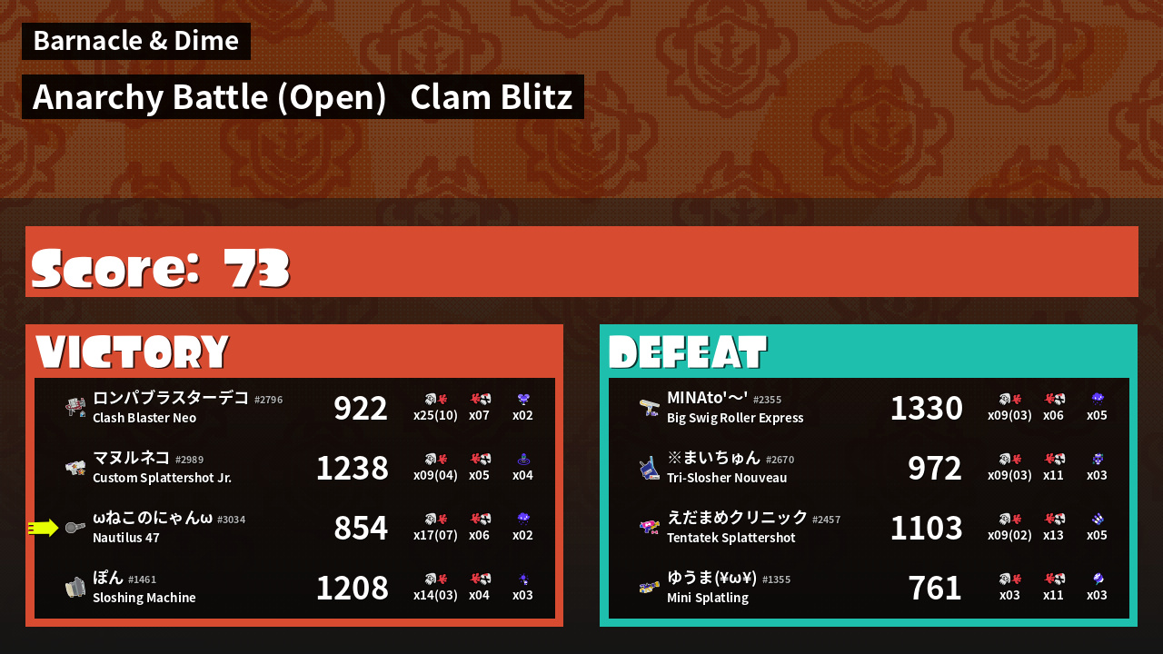 | Mode | Clam Blitz - Anarchy Battle (Open) | ||
