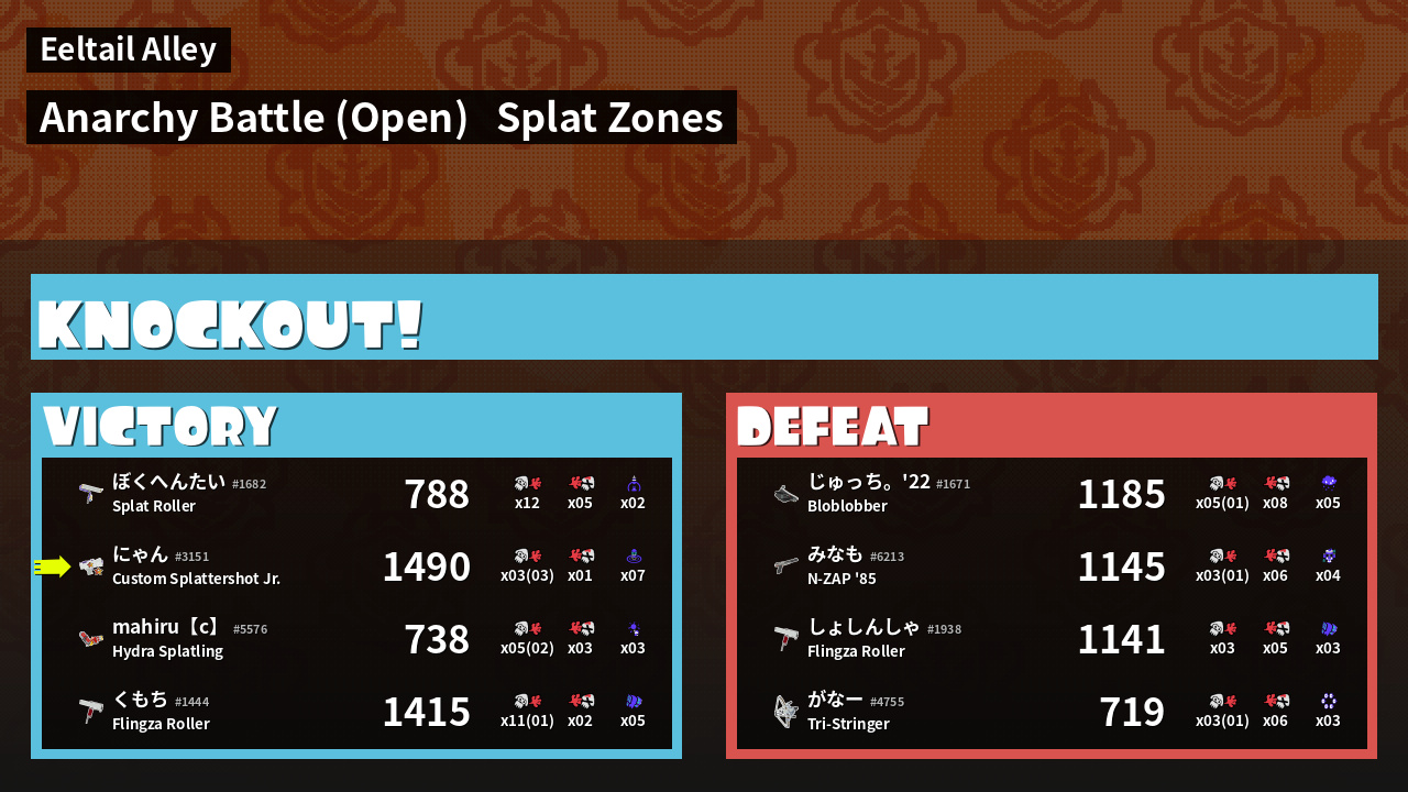 | Mode | Splat Zones - Anarchy Battle (Open) | ||