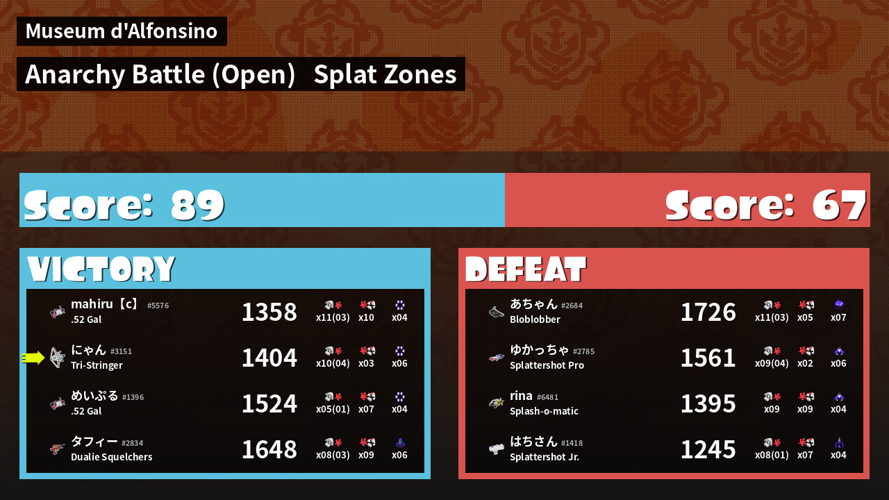 | Mode | Splat Zones - Anarchy Battle (Open) | ||