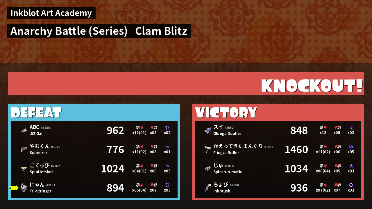 | Mode | Clam Blitz - Anarchy Battle (Series) | ||