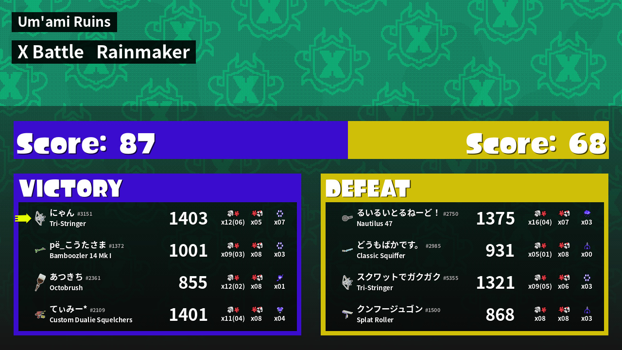 | Medals | #1 Overall Splatter #1 Turf Inker #1 Super Jump Spot | ||