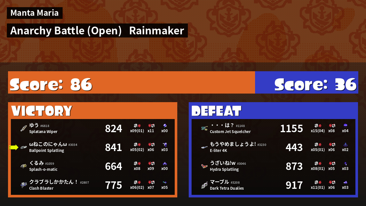 | Mode | Rainmaker - Anarchy Battle (Open) | ||