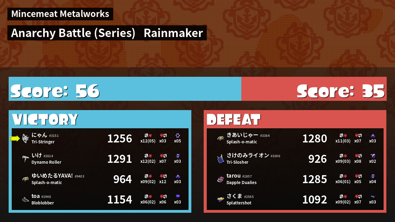 | Medals | #1 Overall Splatter #1 Popular Target #1 Super Jump Spot | ||