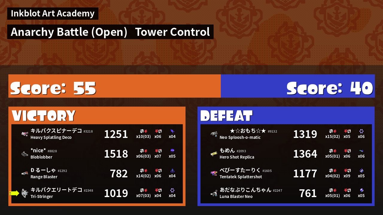 | Mode | Tower Control - Anarchy Battle (Open) | ||