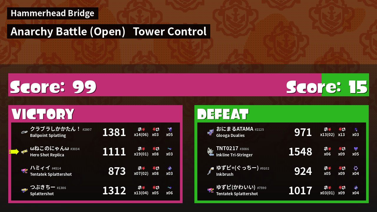 | Mode | Tower Control - Anarchy Battle (Open) | ||