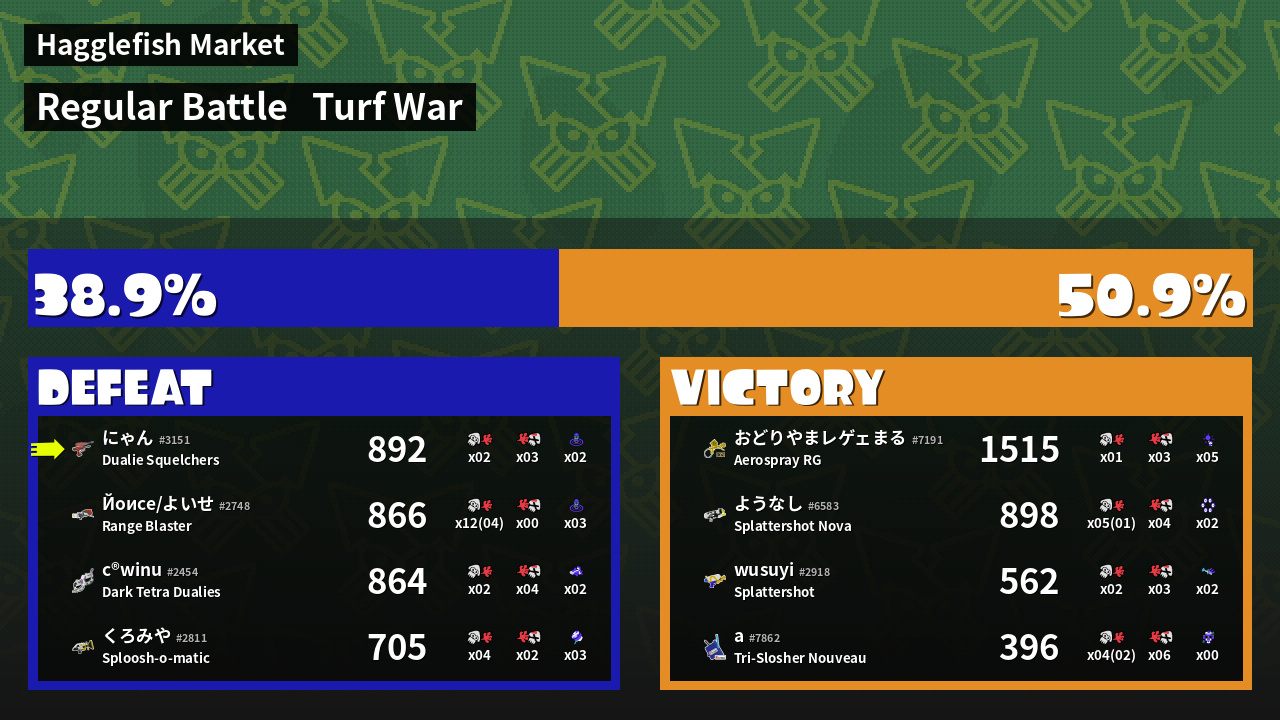 | Mode | Turf War - Regular Battle | ||