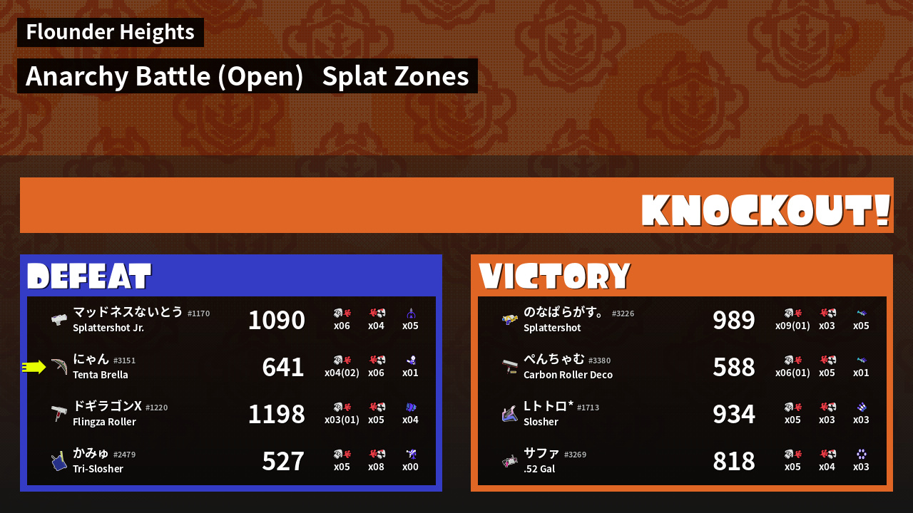 | Mode | Splat Zones - Anarchy Battle (Open) | ||