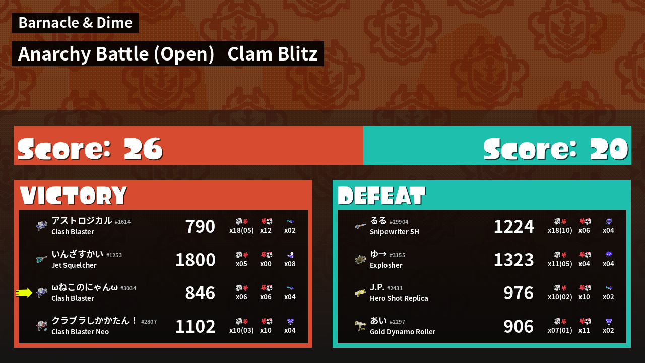 | Mode | Clam Blitz - Anarchy Battle (Open) | ||