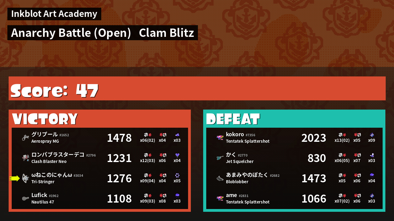 | Mode | Clam Blitz - Anarchy Battle (Open) | ||