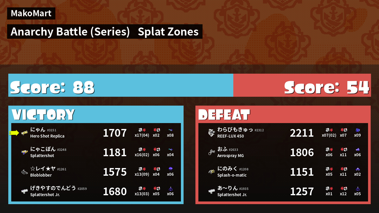 | Mode |    Splat Zones -   Anarchy Battle (Series) | ||
