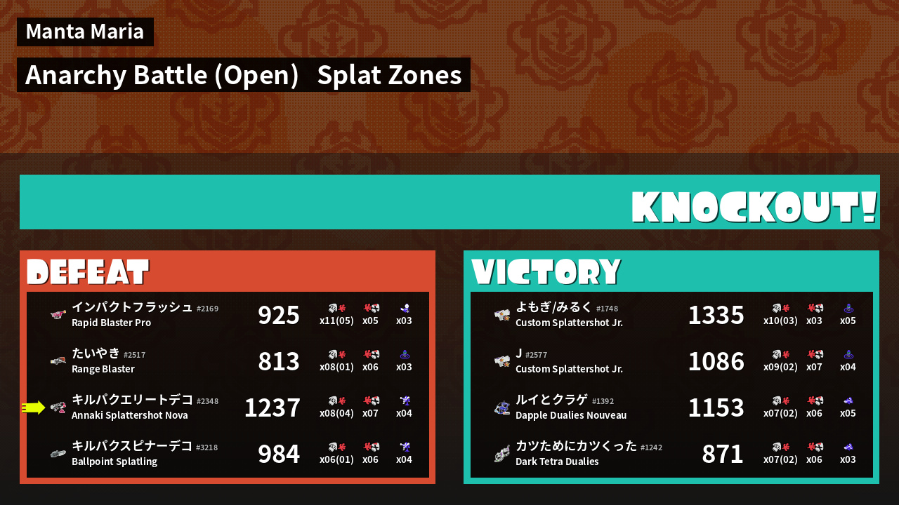 | Mode |    Splat Zones -   Anarchy Battle (Open) | ||