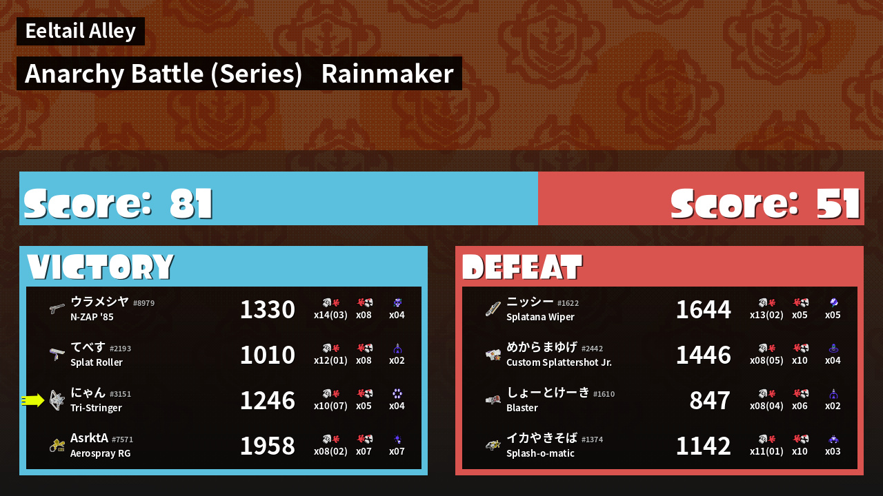 | Mode | Rainmaker - Anarchy Battle (Series) | ||