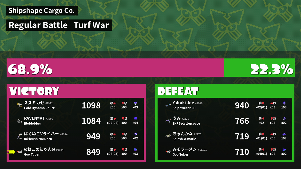 | 推せるゲーマー  うみ #2129 |  Z+F Splatterscope                    | 766 | 2 + 0 | 4 | 0.50 |  2 | |