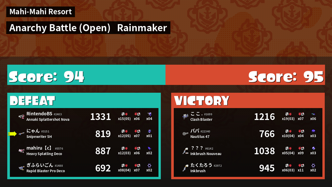 | Mode | Rainmaker - Anarchy Battle (Open) | ||