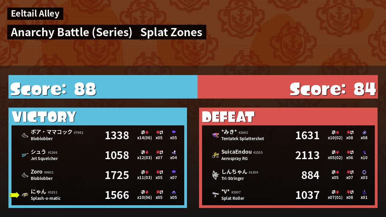 | Mode | Splat Zones - Anarchy Battle (Series) | ||