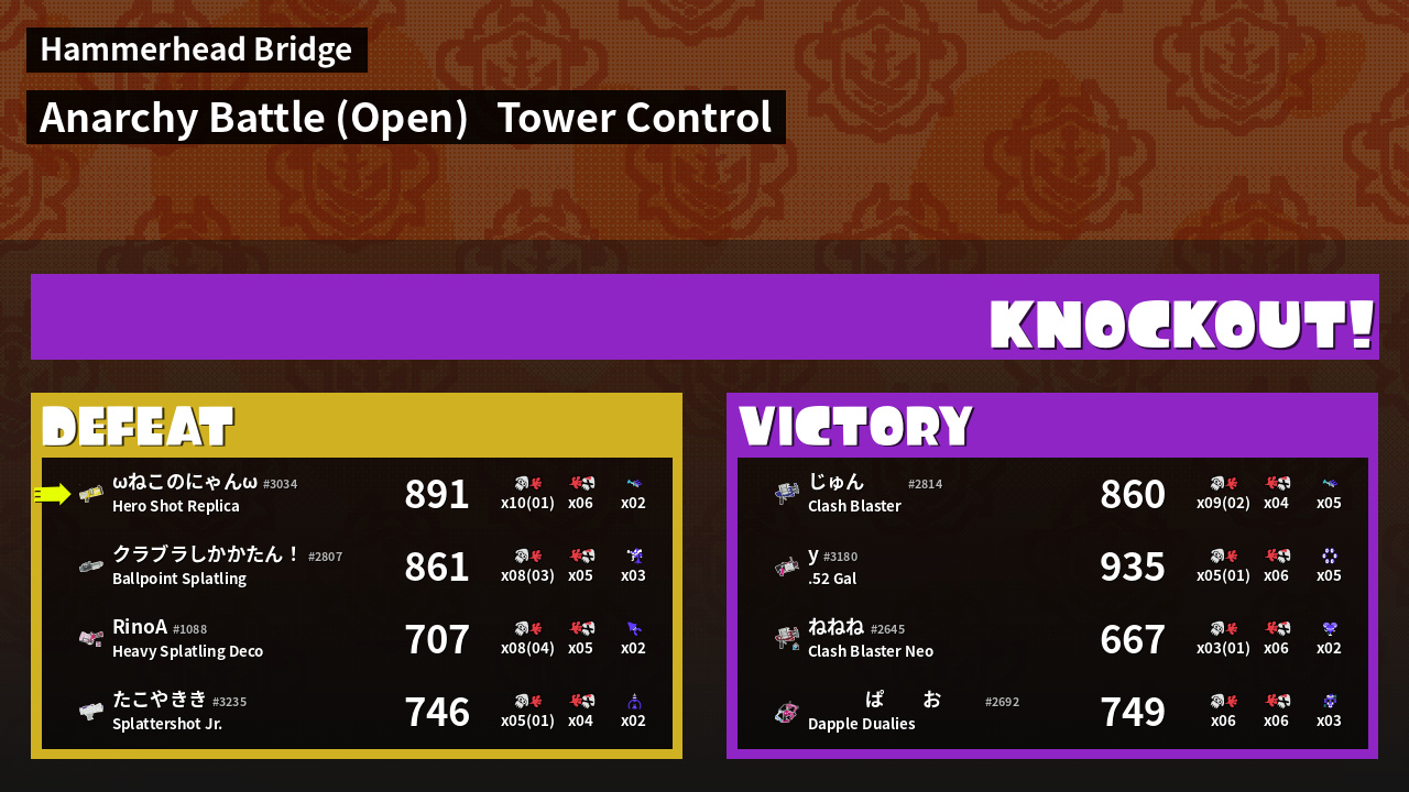 | Mode | Tower Control - Anarchy Battle (Open) | ||