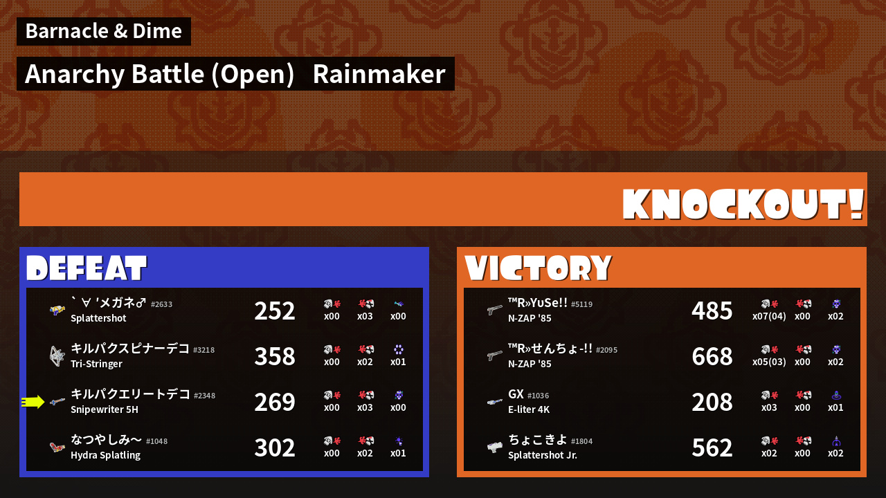 | Mode | Rainmaker - Anarchy Battle (Open) | ||