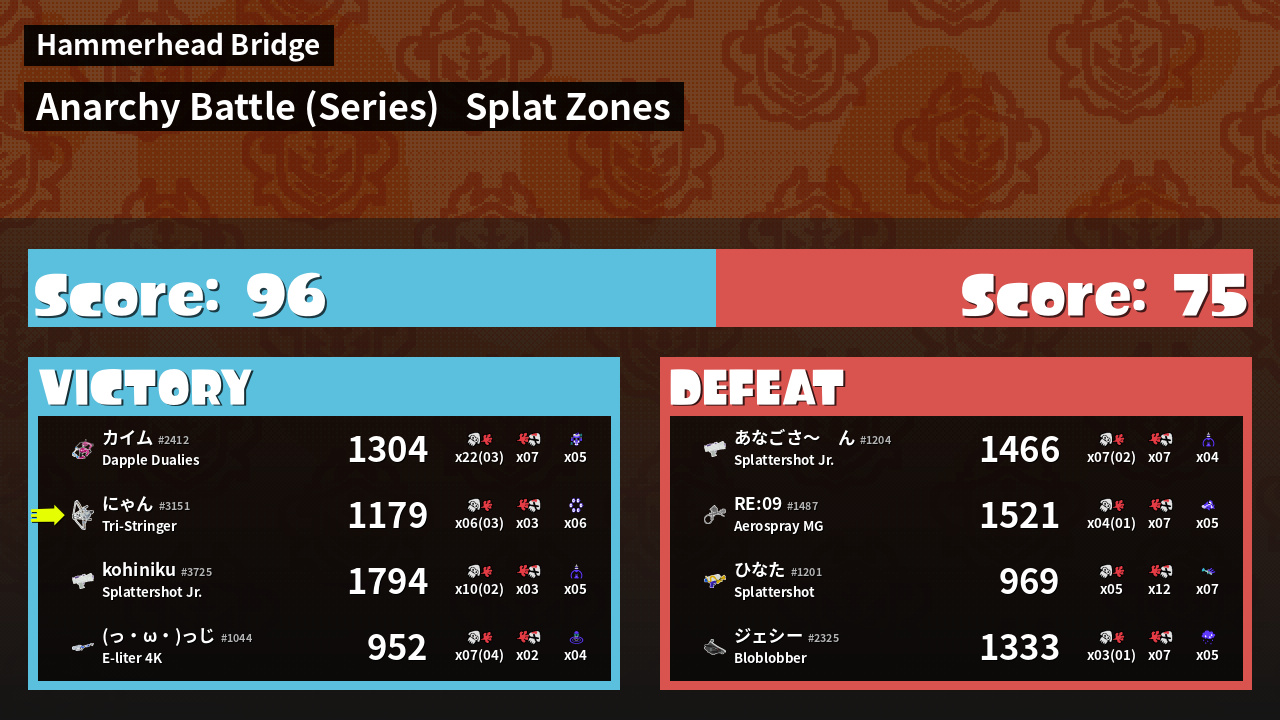 | Mode | Splat Zones - Anarchy Battle (Series) | ||