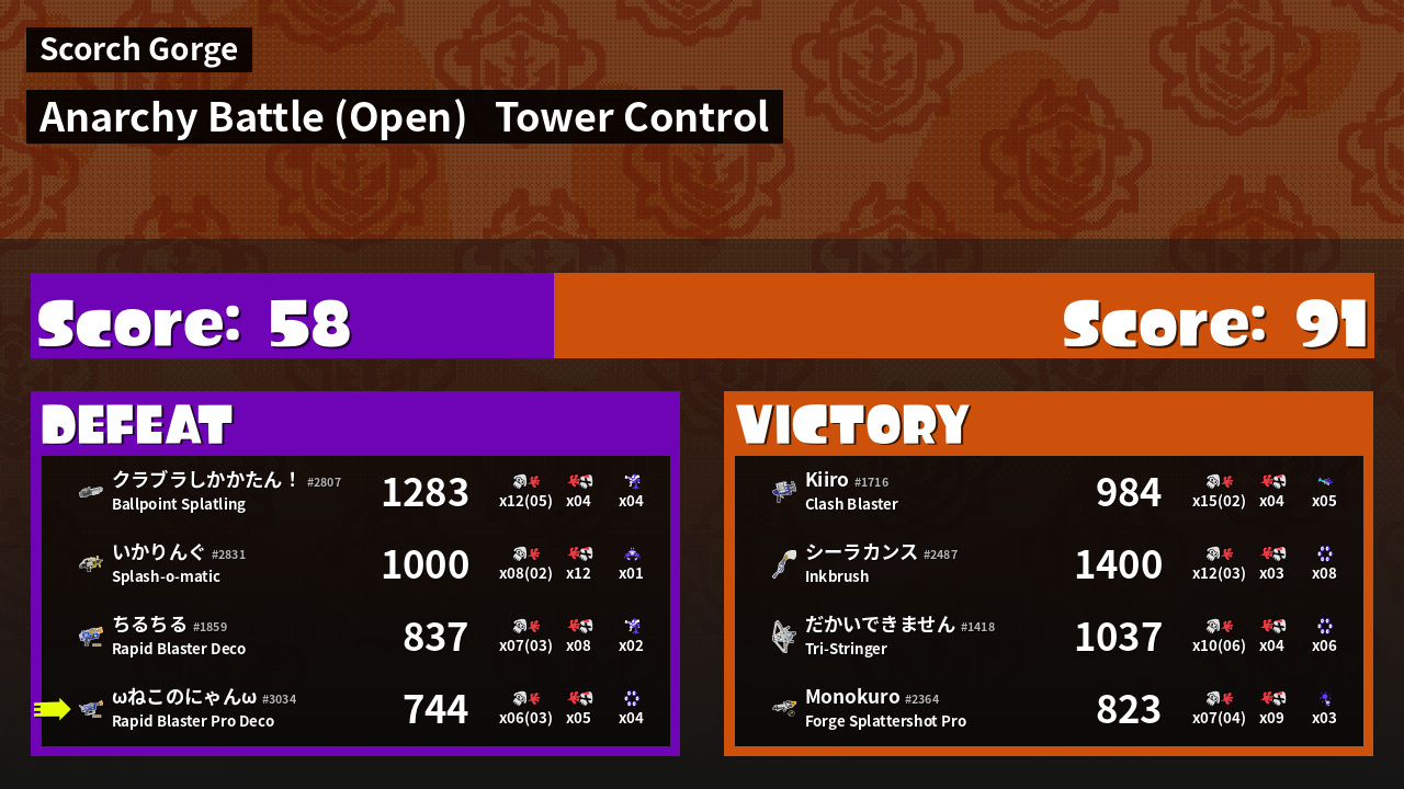 | Mode | Tower Control - Anarchy Battle (Open) | ||