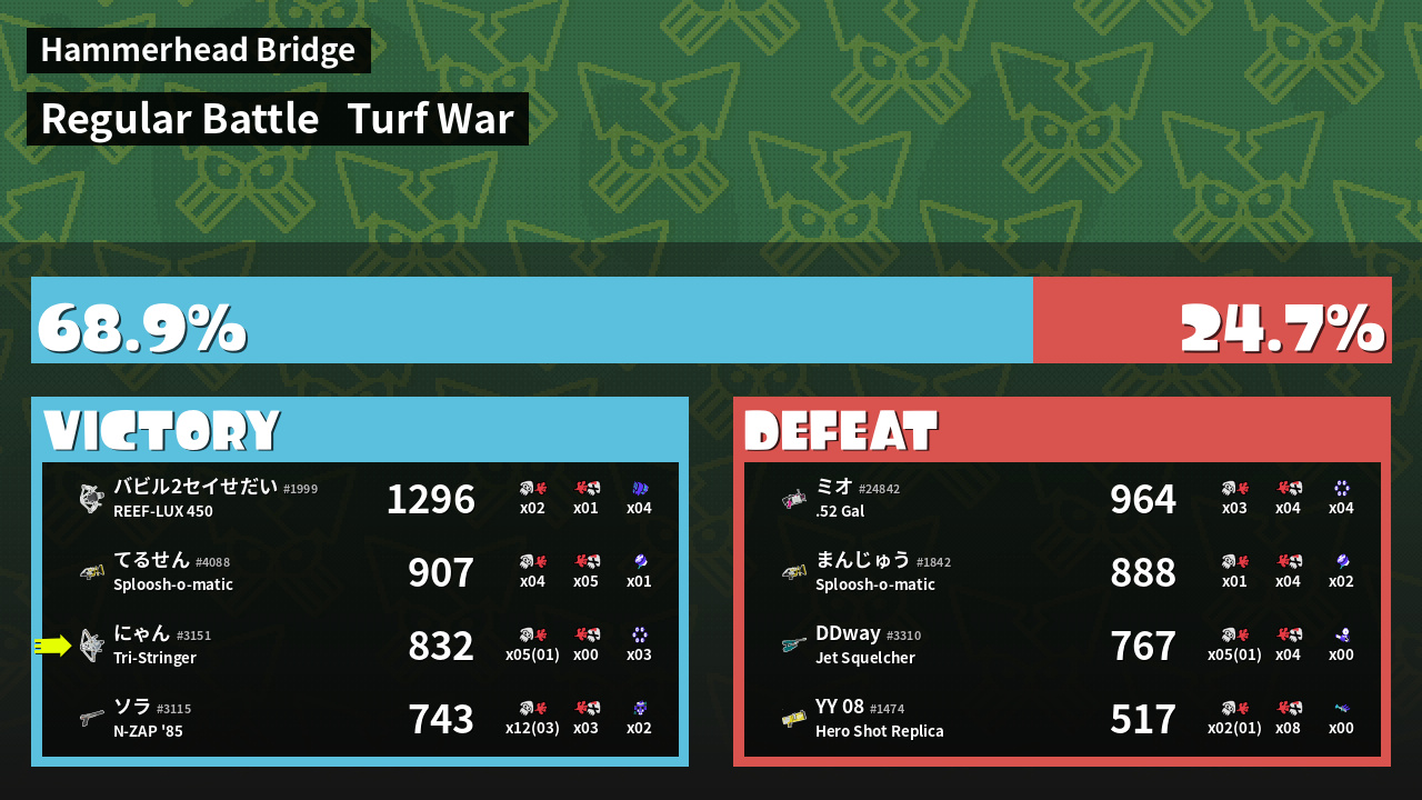| Mode | Turf War - Regular Battle | ||