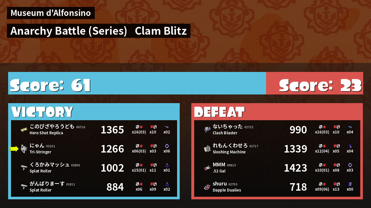 | Mode | Clam Blitz - Anarchy Battle (Series) | ||