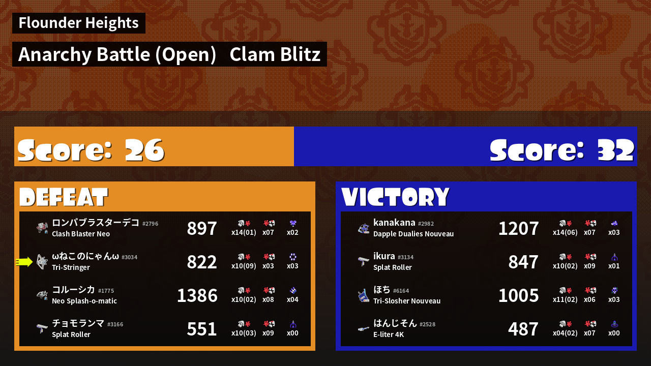 | Mode | Clam Blitz - Anarchy Battle (Open) | ||
