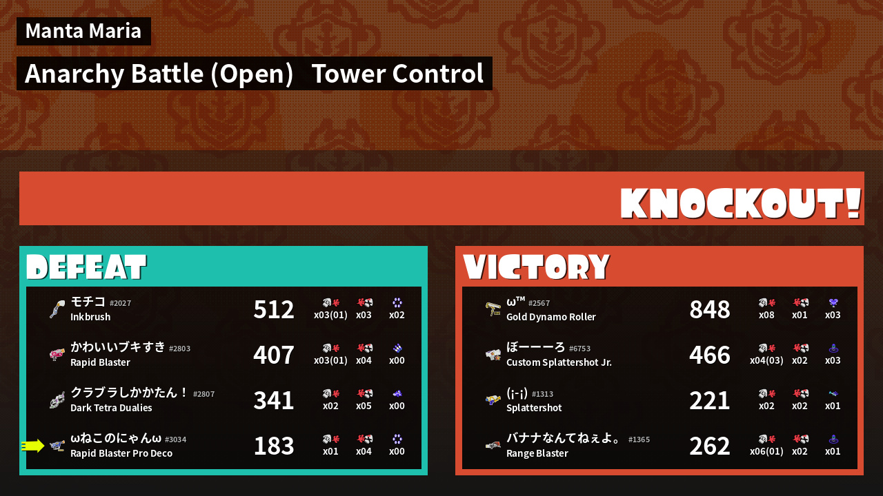 | Mode | Tower Control - Anarchy Battle (Open) | ||