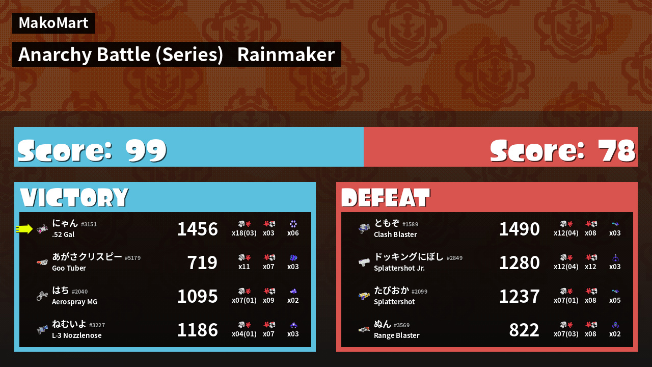 | Medals | #1 Overall Splatter #1 Turf Inker #1 Super Jump Spot | ||