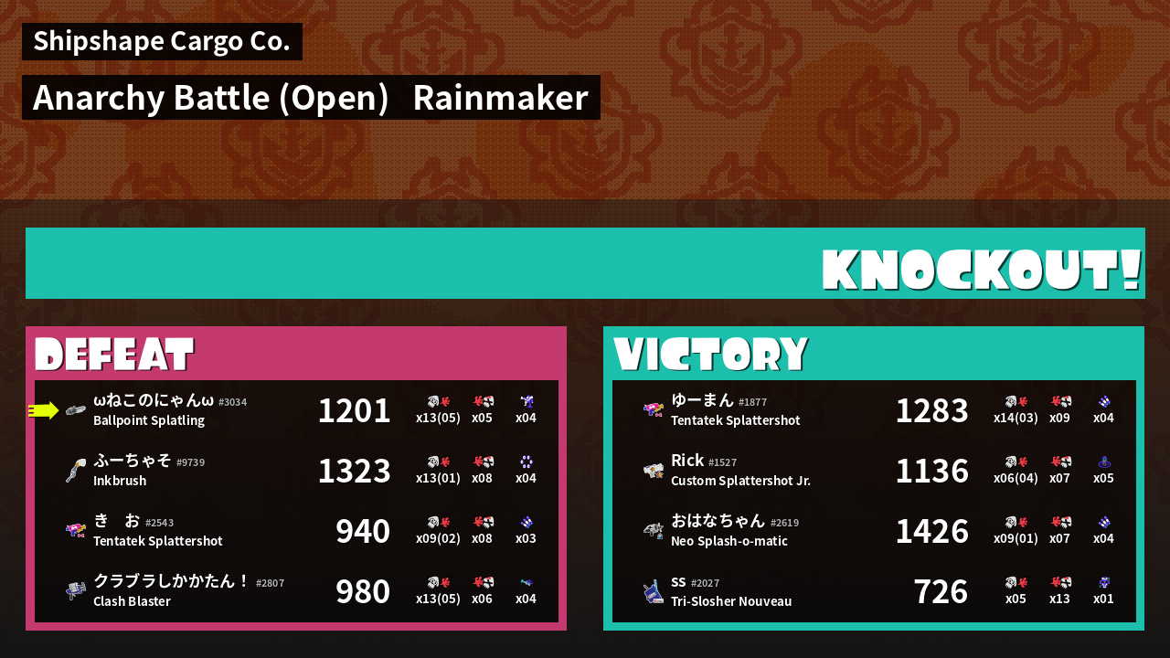 | Mode | Rainmaker - Anarchy Battle (Open) | ||
