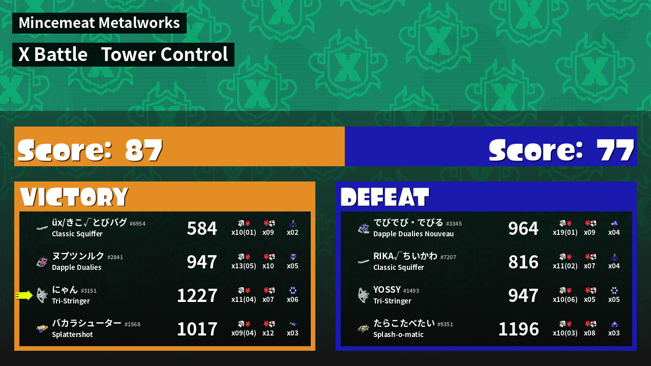 | Mode | Tower Control - X Battle | ||