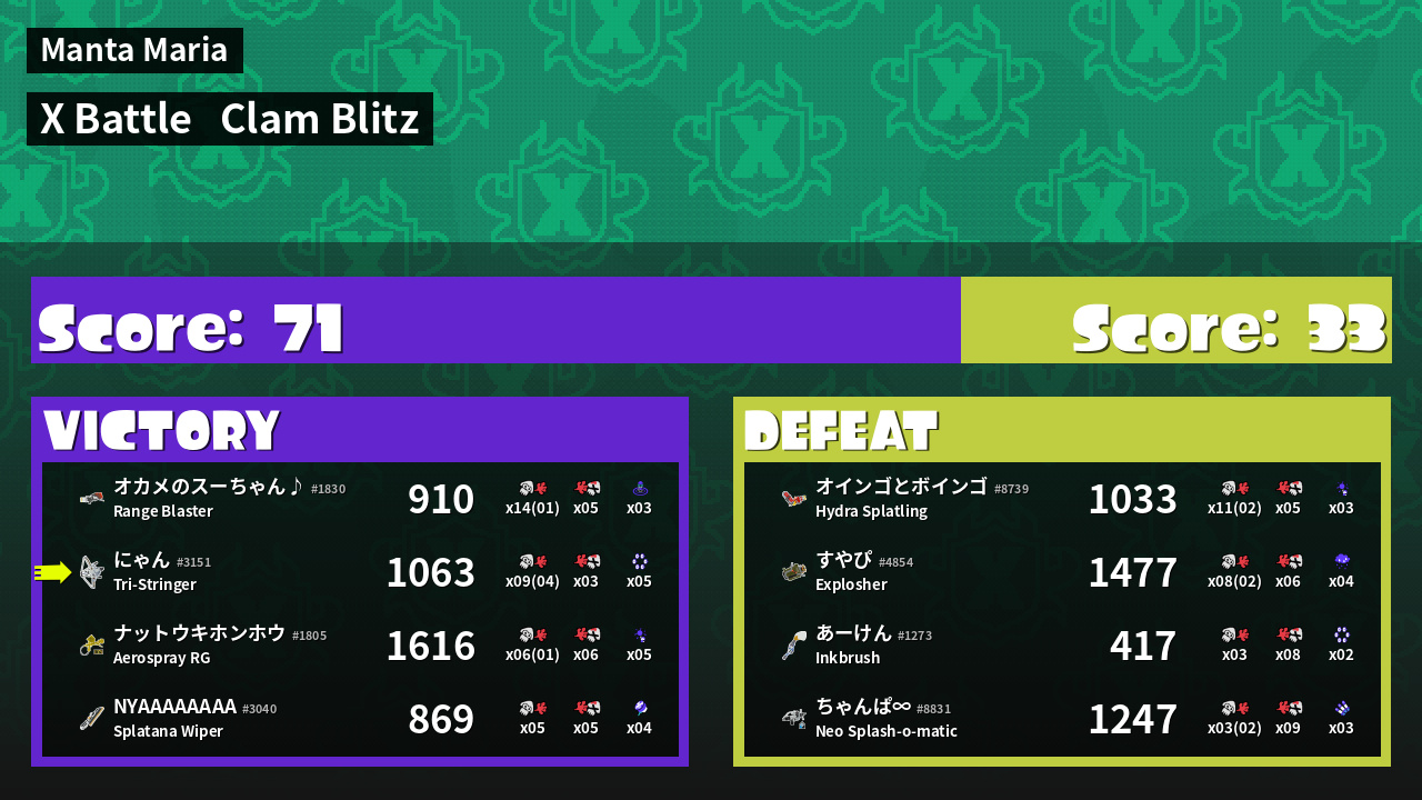 | Medals | #1 Clam Carrier #1 Popular Target #1 Super Jump Spot | ||