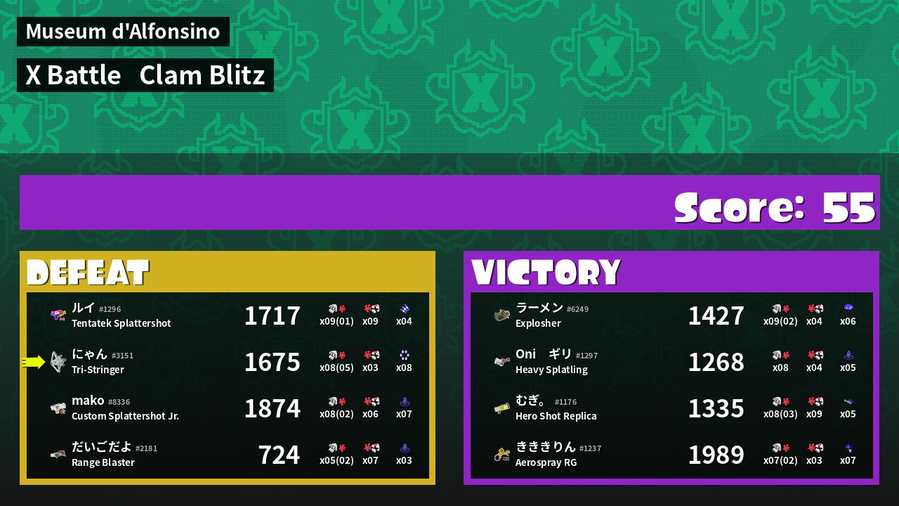 | Medals | #1 Clam Carrier #1 Super Jump Spot #1 Splat Assister | ||