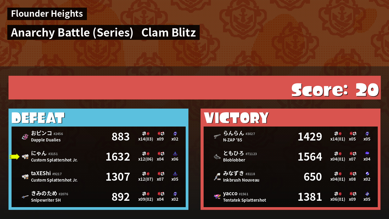 | Mode | Clam Blitz - Anarchy Battle (Series) | ||
