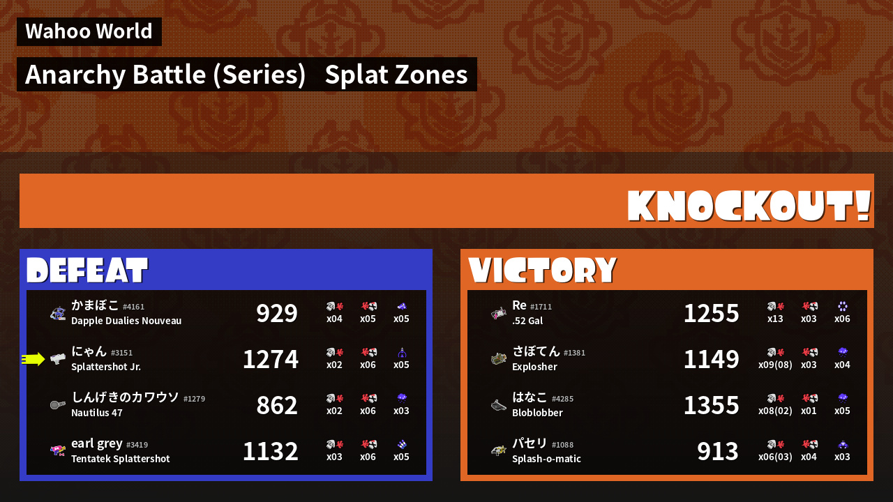 | Medals | #1 Splat Zone Guard #1 Turf Inker #1 Super Jump Spot | ||
