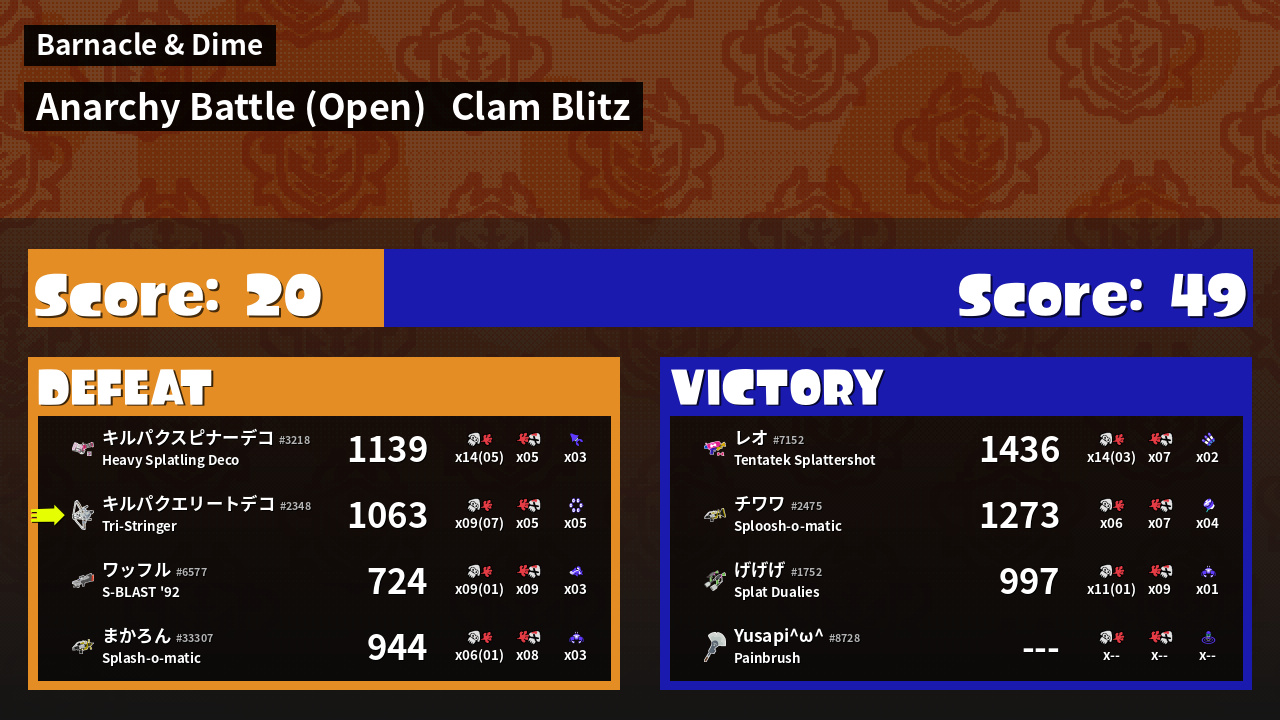 | Mode | Clam Blitz - Anarchy Battle (Open) | ||