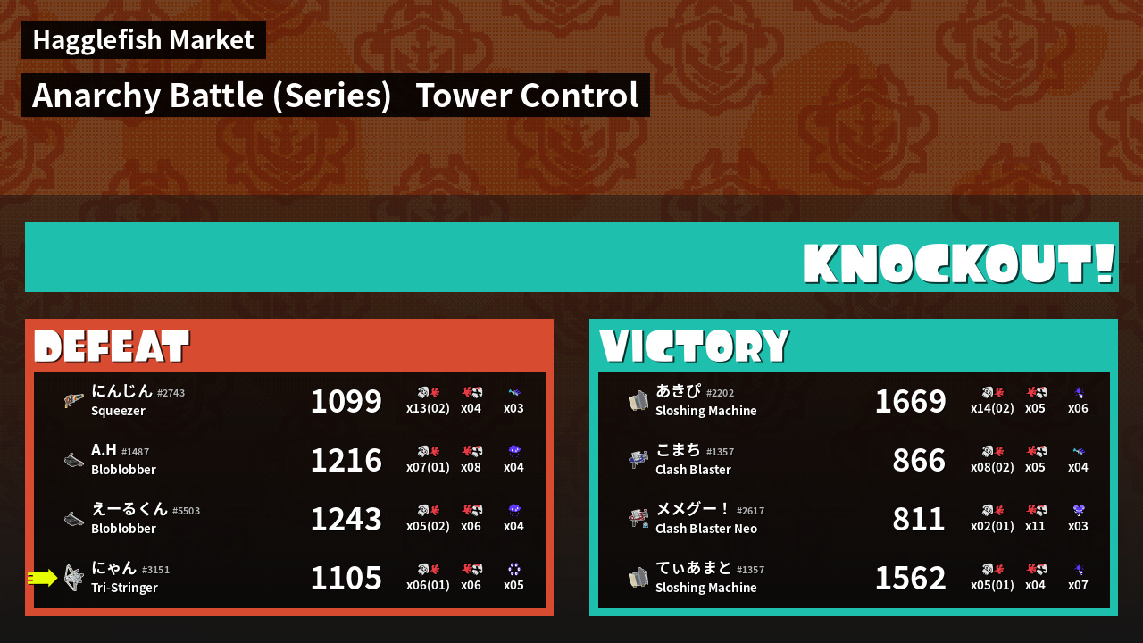 | Medals | #1 Super Jump Spot First Splat! #1 Killer Wail 5.1 User | ||