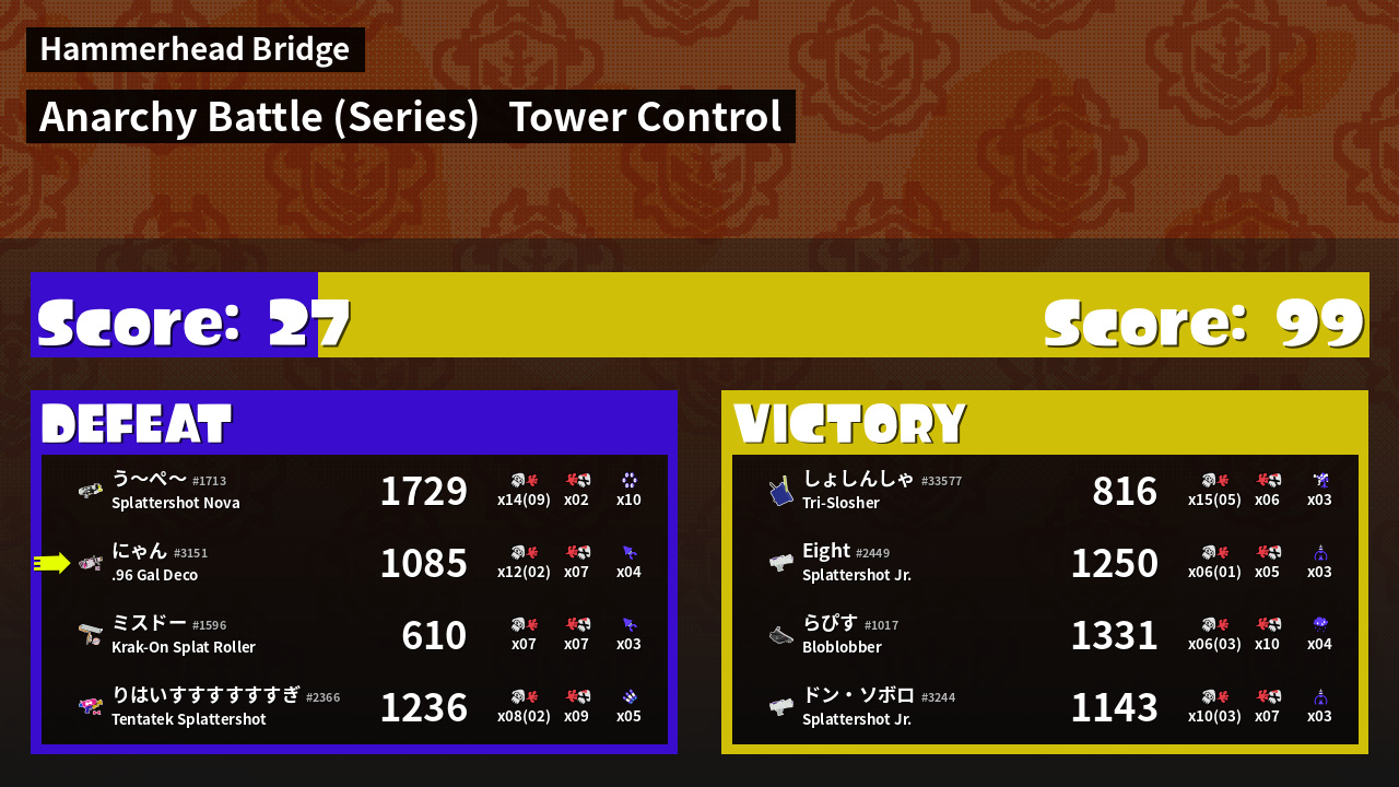 | Mode | Tower Control - Anarchy Battle (Series) | ||
